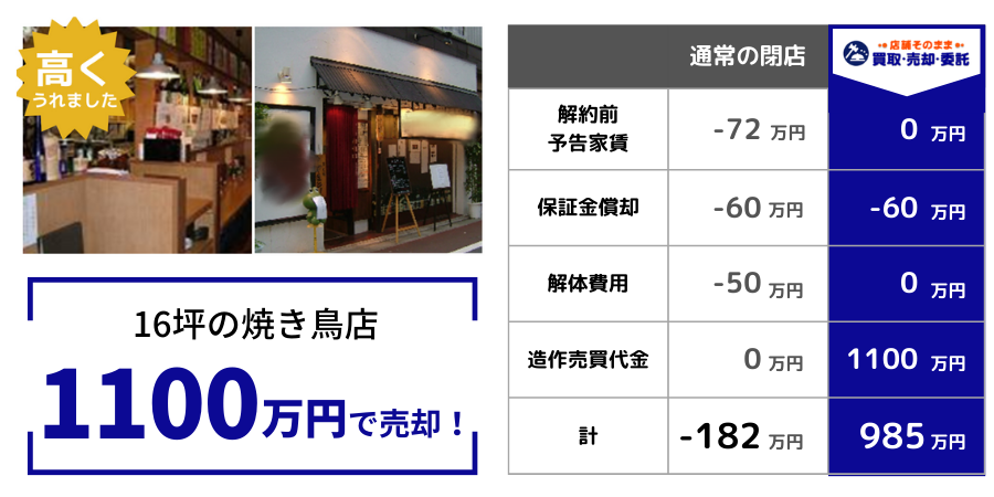 ① 居抜き店舗の売却・撤退費用の削減
